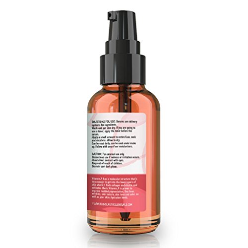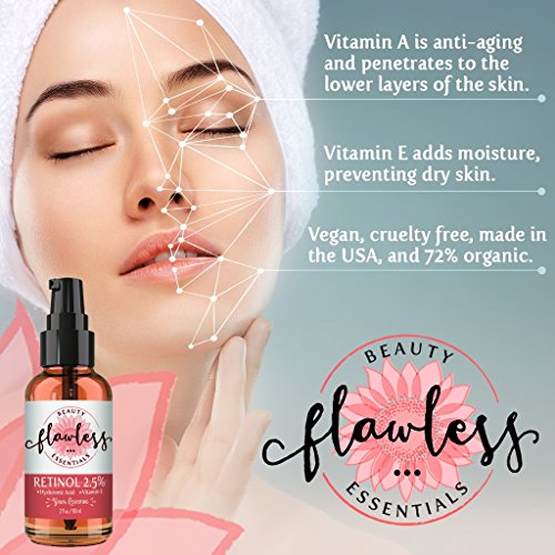 -. Binding : Misc. -. Brand : Flawless Beauty Essentials -. Color : amber, pink, red, white -. EAN : 0683318540026 -. Feature : Retinol (vitamin A) has a molecular thats tiny enough to get into the lower layers of the skin where it finds collagen and elastin and activates them with the strength of 2.5% formula / Vitamin A is proven to improve mottled pigmentation, fine lines, wrinkles, skin texture, skin tone and color, as well as your skins hydration levels / Excess sun exposure is one of the leading causes of premature aging. Shield your skin with the free radical protection of Hyaluronic Acid and antioxidant-rich Green Tea. They also ease inflammation and offer fantastic hydration / By accelerating cellular turnover, Retinol fades brown spots for an age-defying complexion! To help you achieve the dewy, glowing skin you've always wanted, we paired it with Witch Hazel, which brightens the complexion for true radiance. / Made In The USA; Vegan; 72% Organic; Cruelty Free -. IsAdultProduct : 0 -. Label : Flawless Beauty Essentials -. Manufacturer : Flawless Beauty Essentials -. Model : FBERS2OZ -. MPN : FBERS2OZ -. PackageQuantity : 1 -. PartNumber : FBERS2OZ -. ProductGroup : Beauty -. ProductTypeName : BEAUTY -. Publisher : Flawless Beauty Essentials -. Studio : Flawless Beauty Essentials -. Title : Retinol Serum 2.5% (2 OZ Double-Sized Bottle)Youth Restoring, Fine Line Reducing, Minimizes Wrinkles, Hyper-Pigmentation, Dark Spots, And Prevents Sun Damage -. UPC : 683318540026