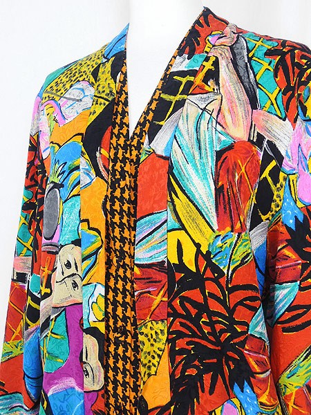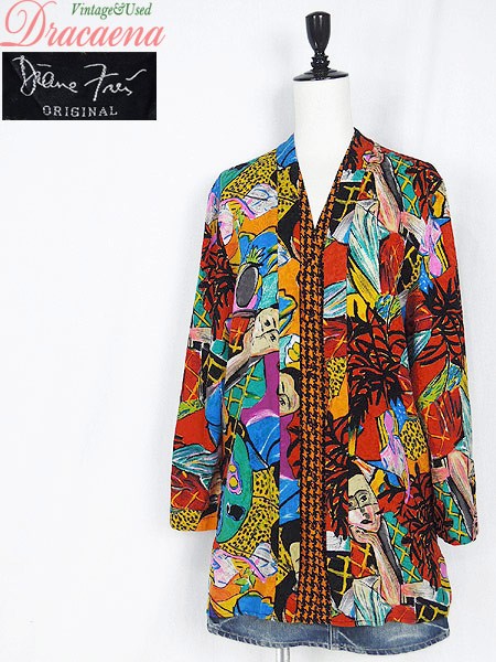 Ladies ブランドDiane Freis カラーカラフル メール便不可 コンディション★★★ 素材シルク 表記サイズP スタッフコメント裏地なし。シルク素材のため、生地のスレ跡が数か所あります。 実寸サイズ 着丈 82 cm 身幅 50 cm 肩幅 38 cm 袖丈 55 cm ※ウエスト・ヒップ以外は平置き採寸