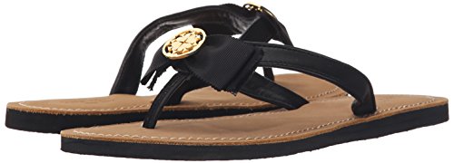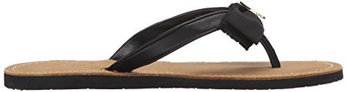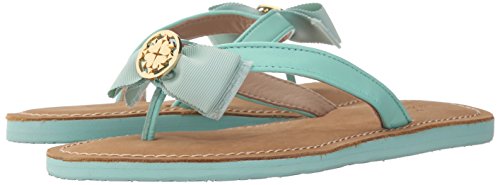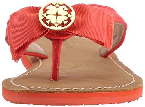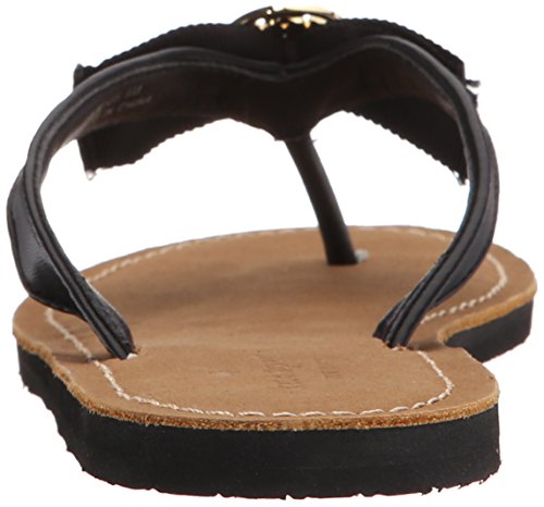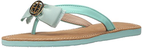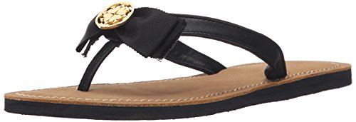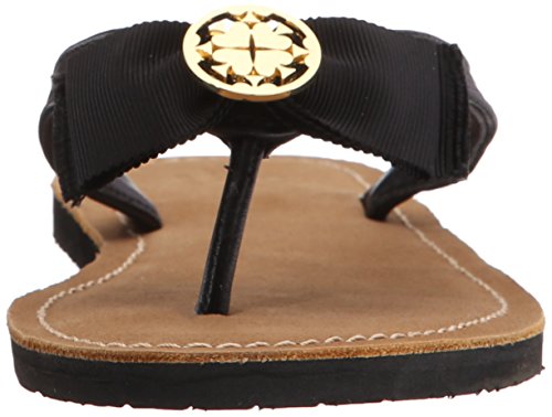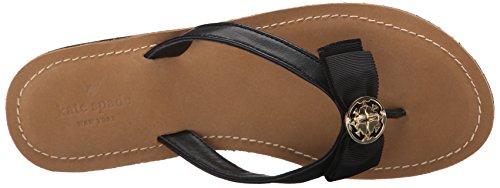 Leather flip flop featuring grosgrain bow with spade medallion at center