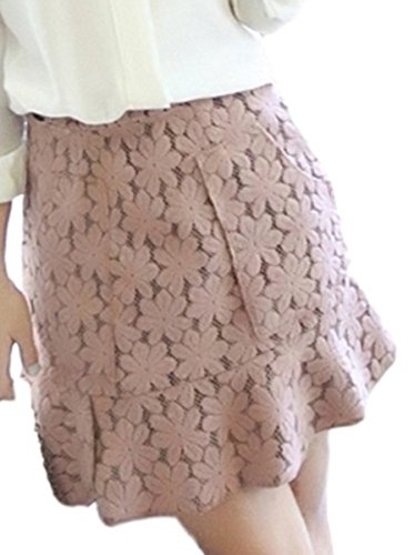 -. Feature : レース使いのタイトな花柄のミニスカートです。 / 重ね生地ですので、下着が透けることはありません。 / サイズS:着丈:38cm・ウエスト:66cm / サイズM:着丈:39cm・ウエスト:70cm / カラー:ピンク 素材:棉50%・ポリエステル50%