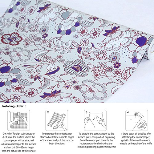 -. Feature : You can tailor it in your own way (Scene pictures are just for reference.) / Material: PVC ; Adhesive-backing, easy to peel & stick to dry flat surface / Measures 17.7 inch wide x 118 inch long (45cmx3M) / Because of different batch's tiny color difference, Please buy enough rolls at a time. / Can be used as wallpaper, wall decorative sticker, shelf drawer liner,kitchen cabinet cover and so on