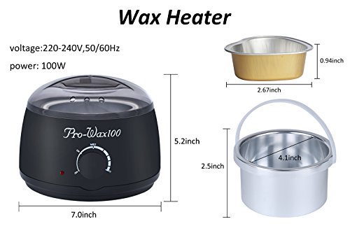 Color: Pink, black Material: ABS plastic, aluminium Size: Wax warmer: W*H: 19*14cm(7.48*5.51in) Wax bean: L*W: 16*13cm(6.30*5.12in) Package Includes: 1 x Wax warmer 10 x Disposable glove 2 (pack) x Wax beans 3 x Bowl 20 x Applicator sticks Note: - Please refer to the measurement. Tiny measuring error is allowable in normal range. - There might be a little color difference due to the monitor, camera or other factors, please refer to the physical item. --------------------------------------------------------