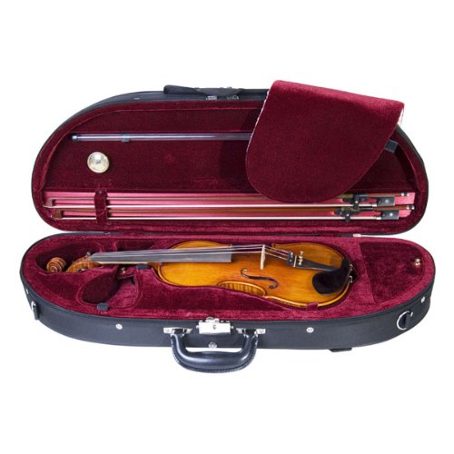 -. Feature : Size 4/4 (Full Size) Pro-deluxe durable plush lined nylon covered hard shell case with straps and zipper pockets and quality velvet interior / Full length large sheet music pocket on top with zipper / Hygrometer measures humidity / Velcro neck straps & padded neck restraint to protect the violin / Compartment for shoulder strap and accessories with double bow holder