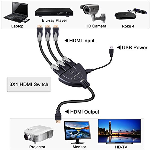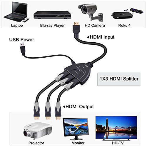 Tendak HDMI Bi-Direction Switch 2x1 or 1x2 HDMI Splitter Switcher Support HDMI 2.0, 4K Ultra HD 3D for your home theatre Nintendo Switch, Xbox One, Roku 3 Specification: Interface: 3 HDMI-Hosts to 1 HDMI port; 1 HDMI-Host to 3 HDMI port Compatible with HDMI Specification 2.0 (or previous HDMI 1.0, 1.1, 1.2, 1.3 and 1.4) Supported resolutions: 4K X 2K/1080p/1080i/720p/576p/576i/480p/480i Supports PCM2, 5.1, 7.1CH, Dolby Digital 5.1, DTS5.1, Dolby TrueHD, DTS-HD Master Audio Supports up to 48-bit deep color Support 3D No external power required LEDs indicate port usage Simple switching features Package Contents: 1 x HDMI Bi-Directional Switch 1 x USB Charging Cable Warranty: 1 Year Limited Warranty by Tendak Note: Does not support one source to 3 TVs/Monitors at the same time ? 0 |