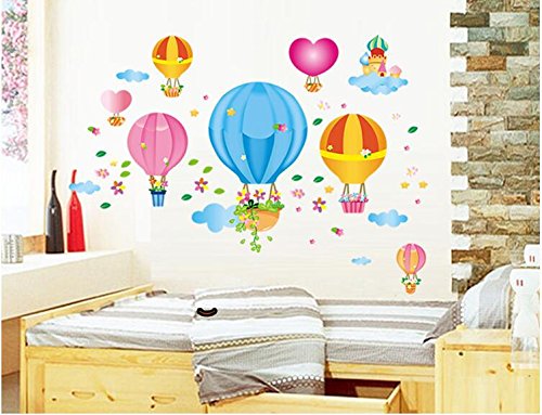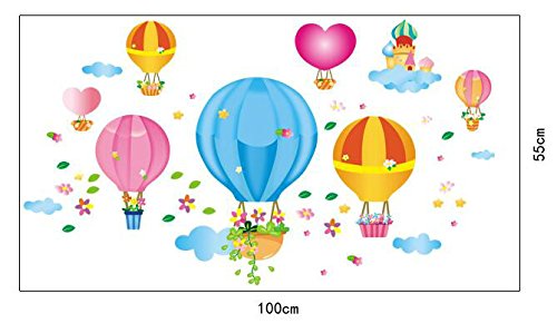 Ryuan Colorful Hot-air Balloon in The Sky Children Wall Sticker Nursery Kids Decals Decoration(39.2"*21.6")