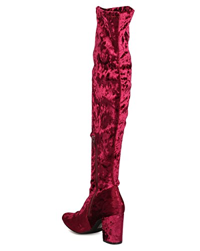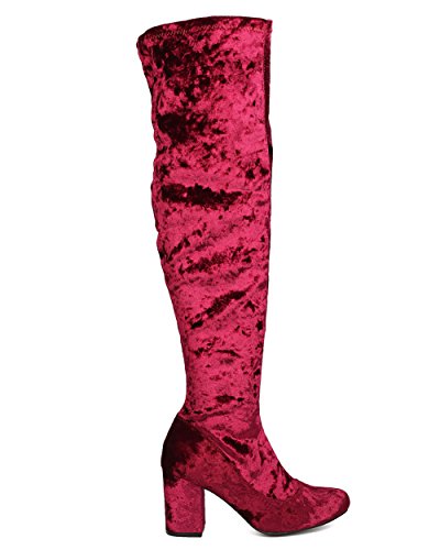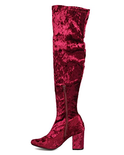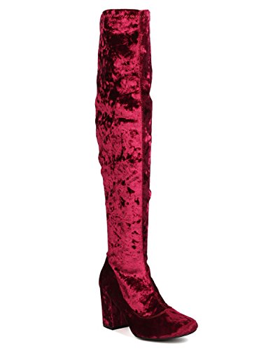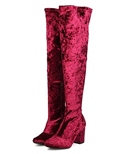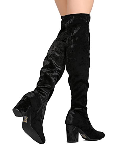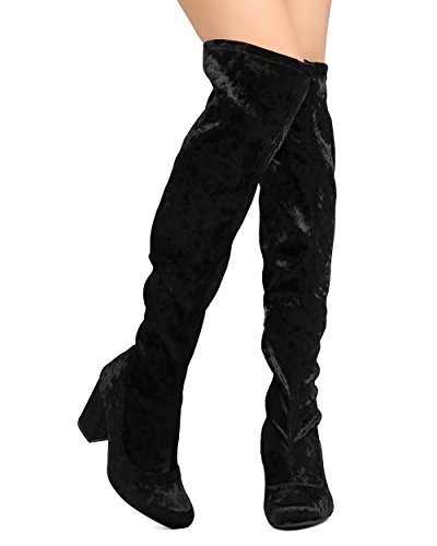 Product Description These velvety over the knee boots are made with a round toe and single sole. Also made with a chunky heel and side zip for easy slip on and off. 0