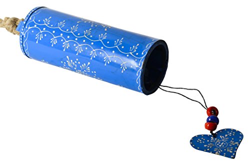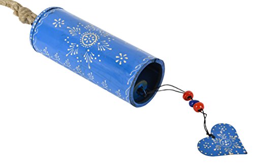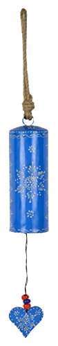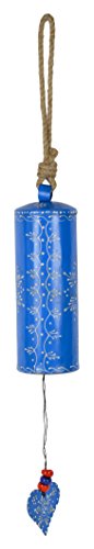 SAAGA Antique Hand Painted Cast Iron Bell / Handmade : 3x3x8 inches (LxBxH) Hanging Length : 25 inches (Blue)