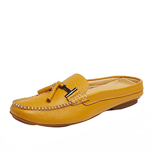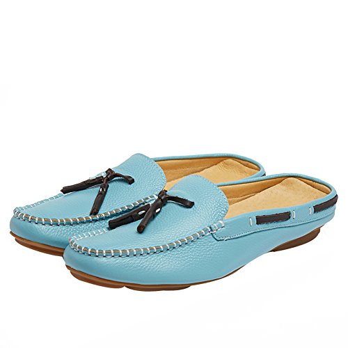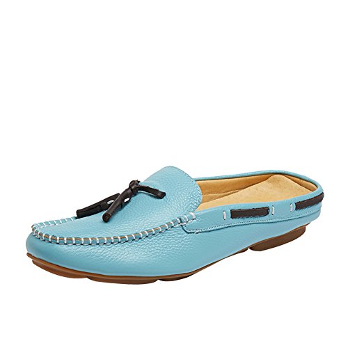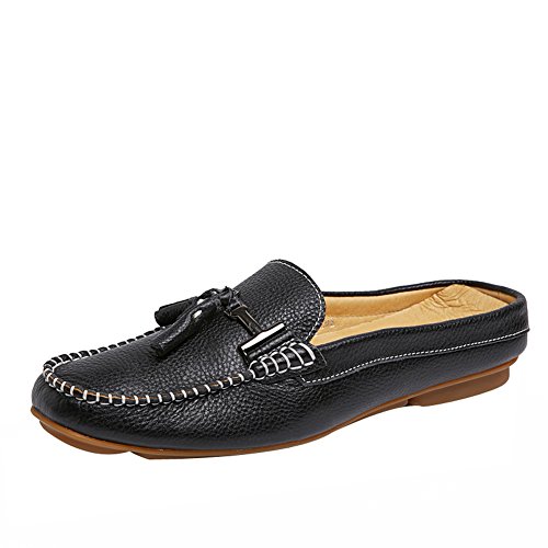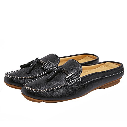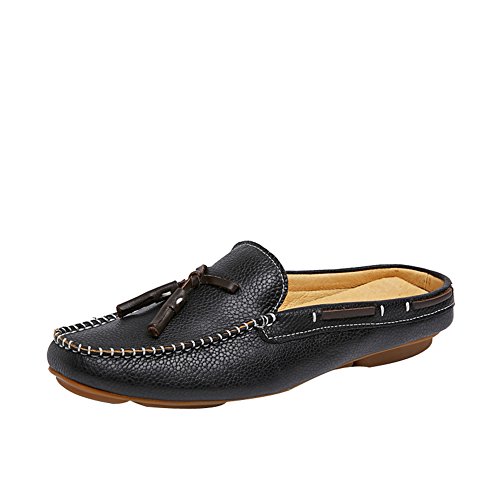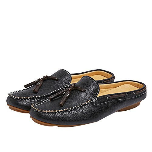 Santimon Men's Comfortable Soft Leather Backless Slippers Scuff loafters Slippers Shoes-2015