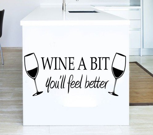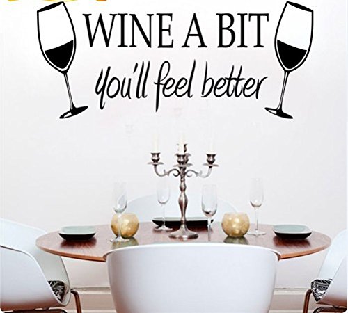 Kitchen Wall Stickers Home Decor, Dining & Cooking Quote Decal Heart Removable Vinyl Art Decoration (Wine A Bit, You'll Feel Better)