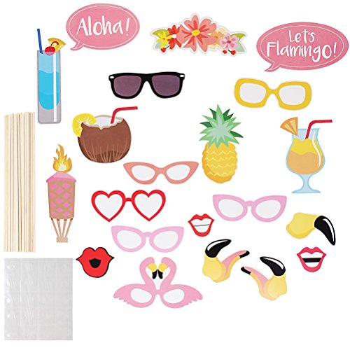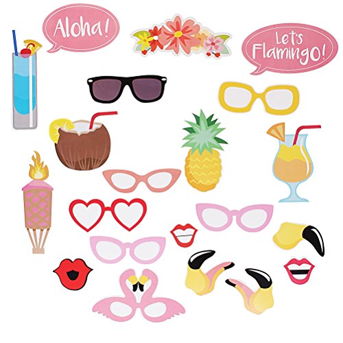 Pengxiaomei 21Pcs Photo Booth Props, Luau Party Supplies DIY Dress-up Accessories for Holiday Party