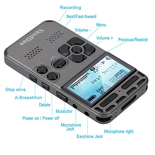 Digital Audio Voice Recorder by Vandlion, 8GB 1536Kbps Sound Audio Recorder with Mp3 Player, Double Microphone, Metal Casing, Voice Activated