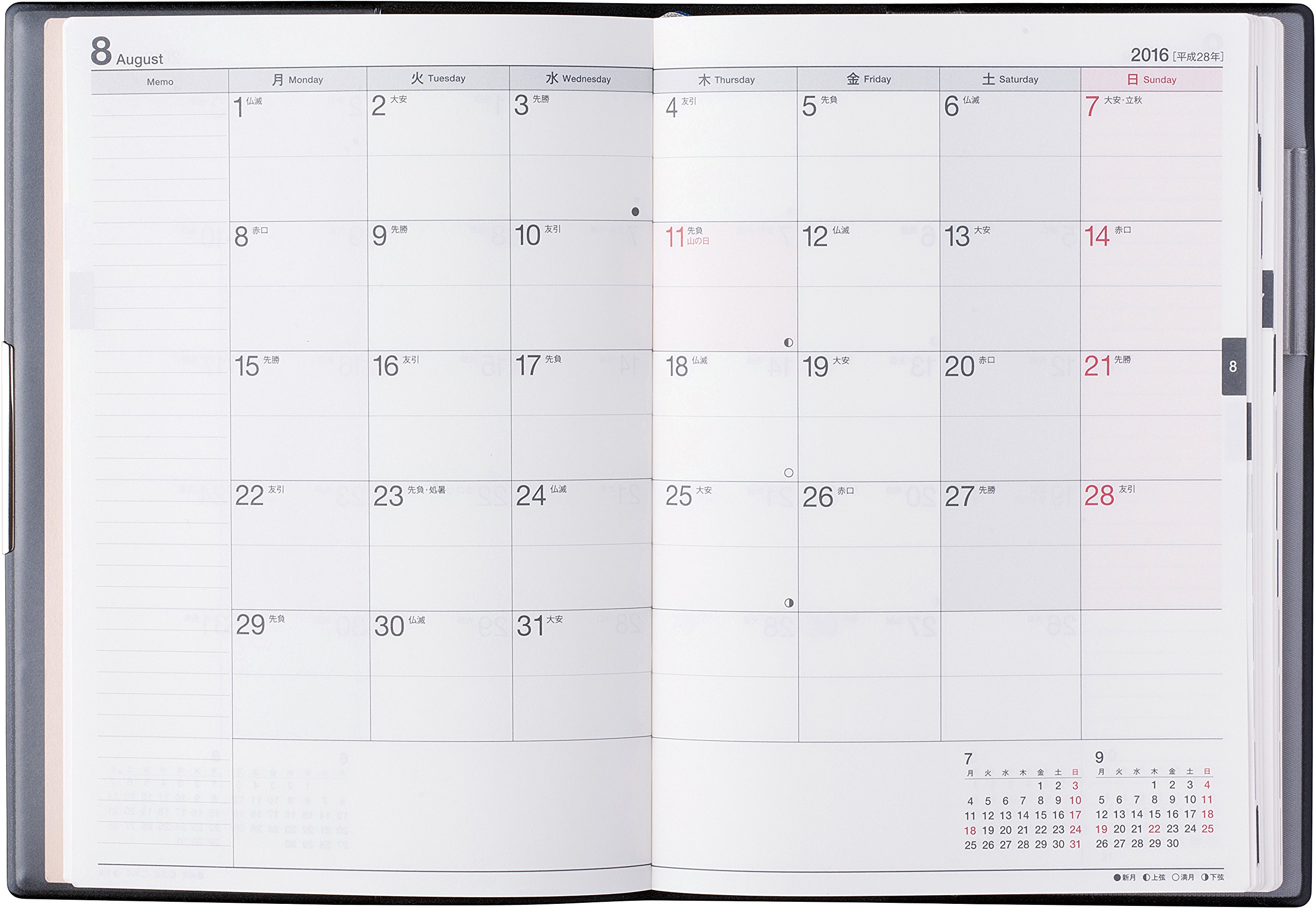Schedule management is mainly carried out by weekly calendar with monthly calendar and weekly calendar composition. Although the configuration is simple, schedule management on a time basis is possible and it is very easy to use and I am using this notebook for years.