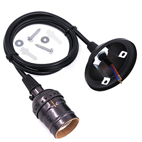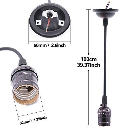 - ★ PRODUCTS INFORMATION --- Total length 3.28Ft.(1m) of Premium Quality Textile Braided (Cloth Covered) Wire, inspired by vintage electrical cord. Fits bulbs with standard E26 / E27 medium size bases. No hard wire installation required.