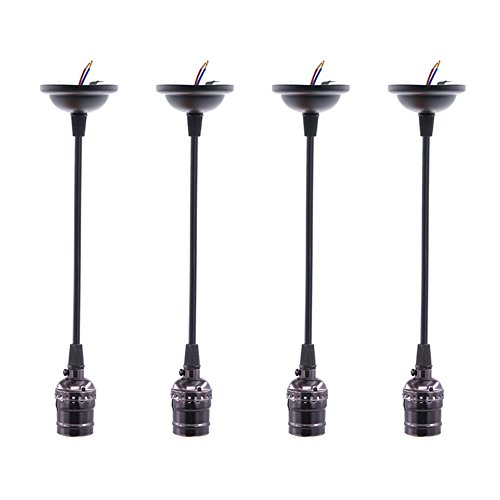 Swpeet 4 Pcs Vintage Edison Light Socket Screw Bulbs Light Lamp Holder With Wire, E26 / E27 Base Adjustable Black Wire for Kitchens, Dining Rooms, Bars and Restaurants