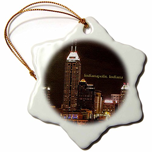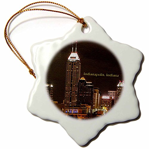 3dRose orn_60310_1 Indianapolis at Night in Texture Snowflake Decorative Hanging Ornament, Porcelain, 3-Inch