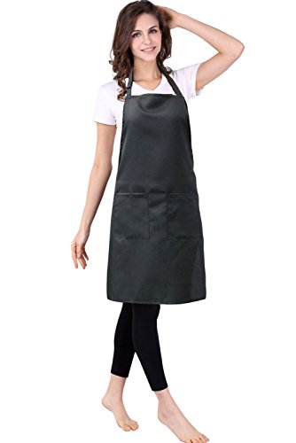 WM BEAUTY Unisex Basic Bib Adjustable Neck Strap Kitchen Black Apron For Men and Women