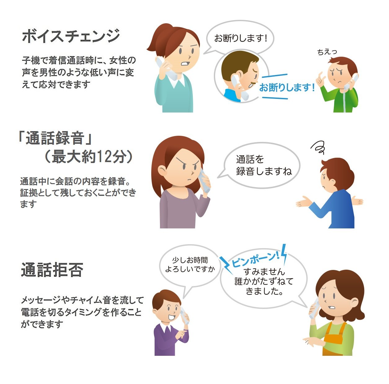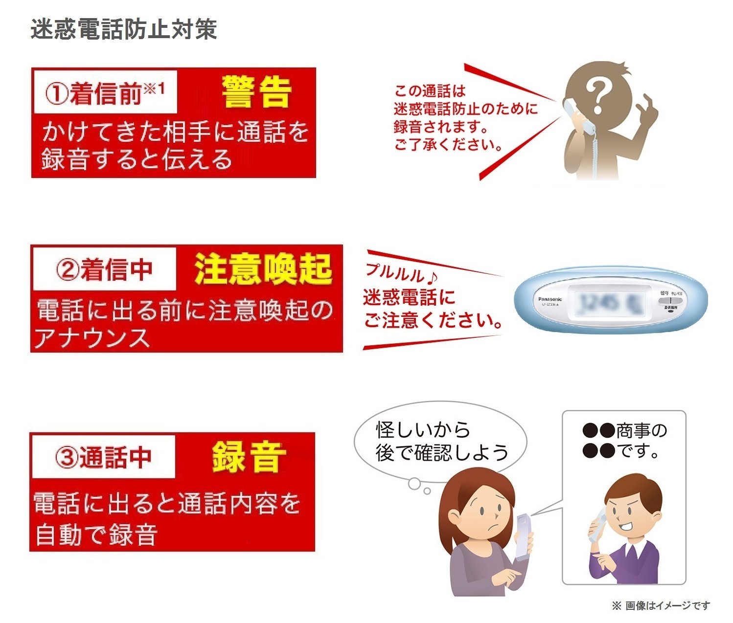 Automatically announce the message to the other party before the ringtone sounds "Nuisance prevention ※ 1"