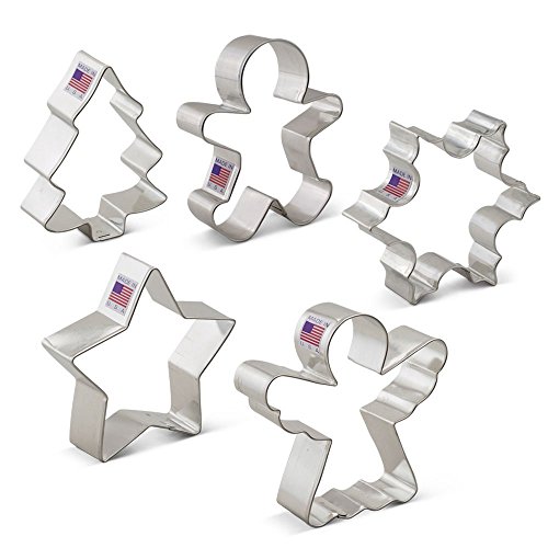Studio : Ann Clark Cookie Cutters Publisher : Ann Clark Cookie Cutters Binding : Kitchen Product Description Set Includes: Snowflake Cookie Cutter: 3 1/8" x 3 5/8" Star: 3 1/4" x 3 1/2" Snow Covered Tree: 3 1/2" x 2 5/8" Happy Gingerbread Man: 3 3/4" x 3" Angel: 3 7/8" x 3 3/4"