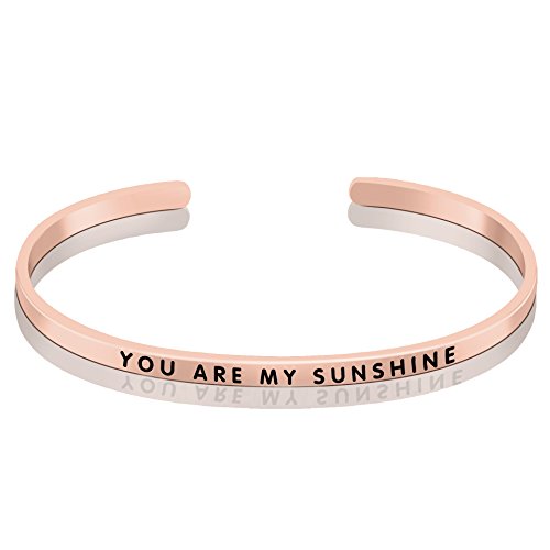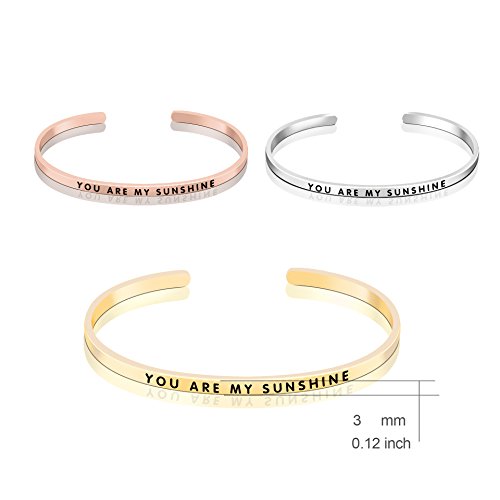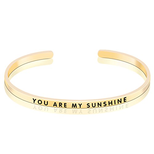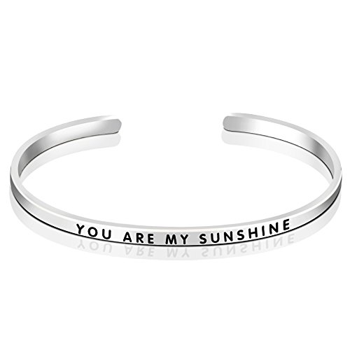 Slender sterling silver cuff bracelet with engraved message "YOU ARE MY SUNSHINE"