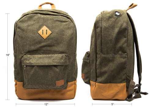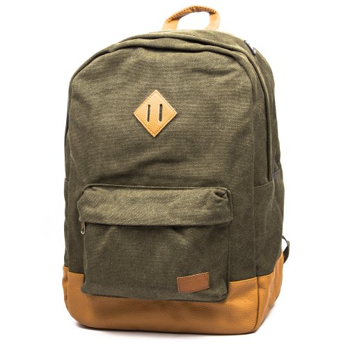 -. Title : Cotton Canvas Unisex Travel Backpack with Laptop Sleeve Green