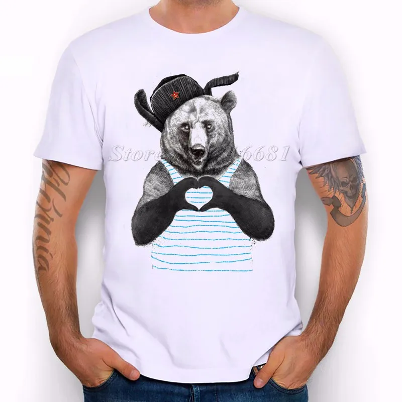 New bear FROM RUSSIA WITH LOVE printed men's casual t-shirt male retro hipster animal tops tee