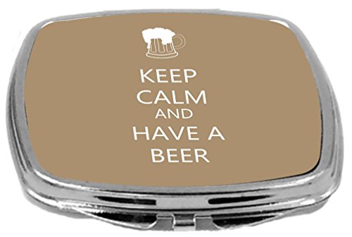 Rikki Knight Compact Mirror, Keep Calm and Have a Beer Brown