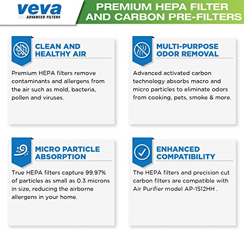Keep your home smelling fresh and clean with True HEPA Replacement Filters! Air never felt so pure with Veva Advanced Filters. Pet owners, smokers, people suffering from asthma or allergies trust Veva Advanced Filters for their needs, whether to remove odors, smell, allergens, pet hair, dust or smoke from their household. ? UPGRADE YOUR AIR PURIFIER - We use the highest quality materials to help you get the most out of your air purifier. The True HEPA filter and Pre filters are made thicker more absorbent and working in combination to improve the overall indoor air quality of your home. ? EASY INSTALLATION - Designed to fit with CW Model AP1512HH AP-1512HH to make installation quick and easy. HEPA Filter Dimensions: H: 13" x L: 15" x W: 1" and Pre Filter Dimensions: H: 13" x L: 15" x W: 0.2" ? MORE HEPA FOR YOUR BUCK- Get more for your money with two HEPA filters in each pack as well at 8 additional Pre-filters to soak up that odors, smell and smoke. Click ADD TO CART NOW and receive Veva Advanced Filters 100% Money-Back Guarantee! We are so certain that our True HEPA and Pre-filter Combo will enhance the air quality in your home that we offer a 90 day no-questions-asked refund policy. This is a generic product designed and engineered in the United States by VEVA Advanced Filters. We are not affiliated with, sponsored by or associated with Coway. Use of the Coway® brand name logos are the registered trademark of their respective owners this OEM product is not covered by their warranty. The Coway brand name, model number or model designation for this product is made solely for purposes of demonstrating compatibility. 0 |