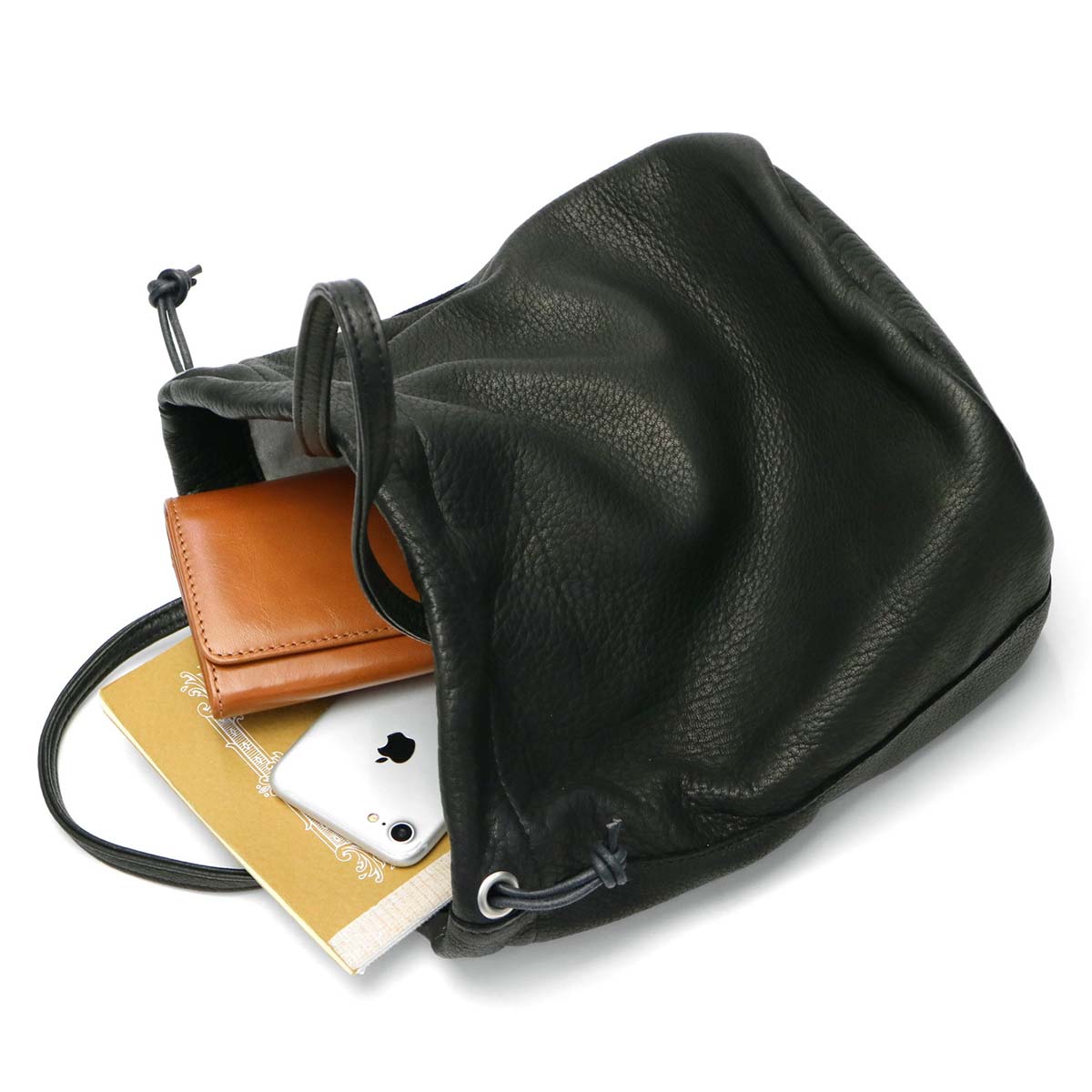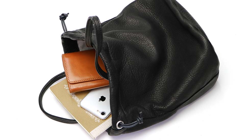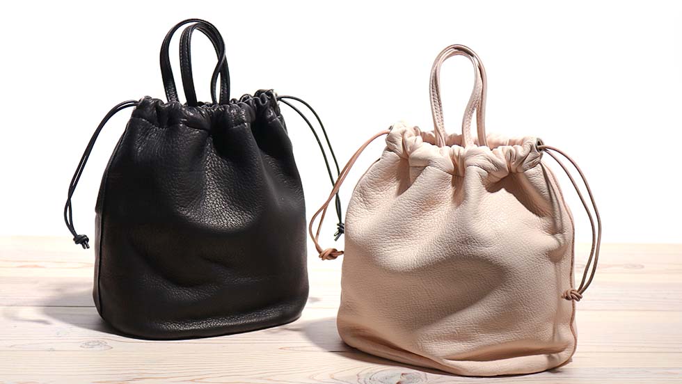 鹿革の巾着バッグ