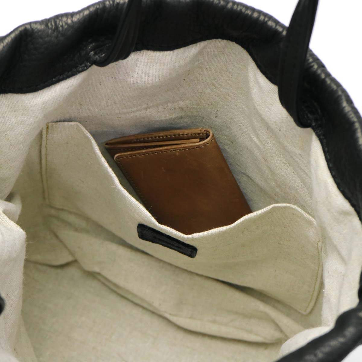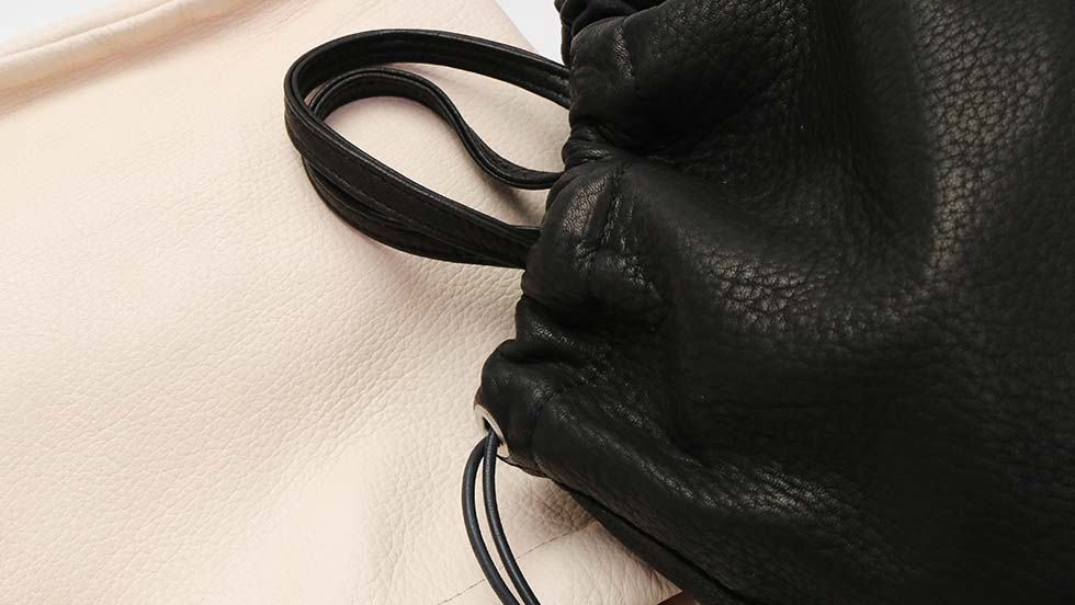 弾力がありつつ、ふわっとしたしなやかさが魅力の、巾着仕様のトートバッグ。古くから武具にも使用されてきた鹿革を使用し、適度な伸縮・耐久性を備え、軽く、柔らかく、丸みを持たせることで優しい印象の仕上がりとなっています。