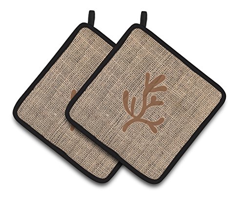 Caroline's Treasures Coral Faux Burlap & Brown Pair of Pot Holders BB1103-BL-BN-PTHD, 7.5HX7.5W, Multicolor