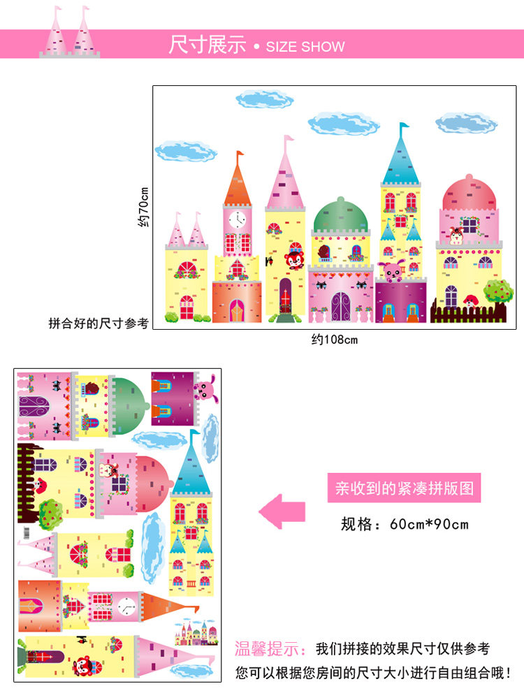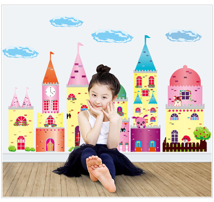 沃雅 幼儿园儿童房间公主小女孩卧室装饰卡通城堡墙壁贴画可移除墙贴纸