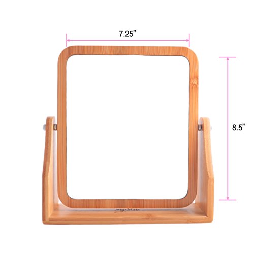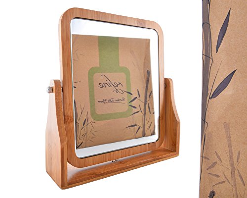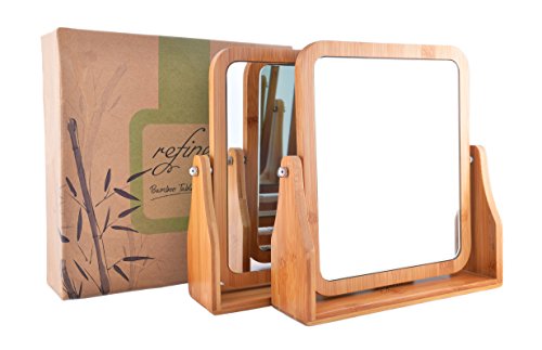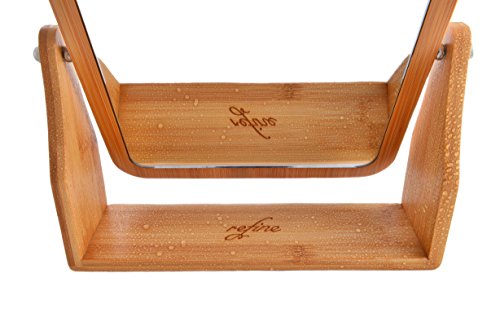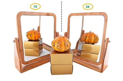 Refine Bamboo Vanity Mirror, 360 swivel, dual-sided 1x/3x magnification for makeup for tabletop, bathroom, countertop (Large)