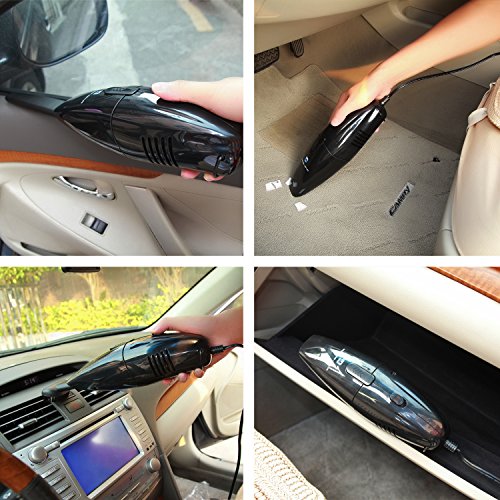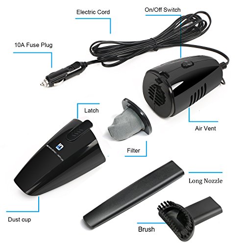 -. Feature : MULTIPLE VACUUM CLEANING: 1. Normal use without long nozzle and brush mouth, its suction will be stronger, clean crumbs, sand, dirt, paper, etc. 2. The long and slim nozzle is suitable for sucking the dust in the corner of the car, such as bottom of the seat, the seat side, the doors, rear window, and so on. 3. The brush mouth can suck interior cracks or suede dust sundry, like the bottom of suede, car trunk carpet, velvet cushion, air-conditioning outlet. / EXCLUSIVE DESIGN: Foseal vacuum car with 14.8FT power cord makes you can clean anywhere in your car. And 75W vacuum cleaner means it has a strong suction, 12V cigarette lighter applicable for all vehicles, simple and convenient to use. / SMALL OCCUPIED SPACE: Compared with the ordinary vacuums, Foseal 12 volt vacuum is so compact that it easily stored in the glove compartment, therefore, it is convenient to use at any time, and takes up very little space in the car. / POWERFUL FUNCTION: Small vacuum for car, easy to deal with cigarette butts, ashes, dust, dirt, peel, paper, leaves, pet hair, mites, particles. It would give you the best environment in your car. The filter is washable and reusable and would absorb all kinds of dusty. / PACKAGE INCLUDED: 1 X car vacuum cleaner, 1 X long nozzle, 1 X brush mouth, 1 X user manual, 1 X black bag. Any question, please email us, we response you within 24 hours. We provide 1 YEAR QUALITY GUARANTEE, WE WILL GIVE YOU REFUND OR SEND YOU REPLACEMENT IF YOU ARE NOT SATISFIED WITH OUR PRODUCT.