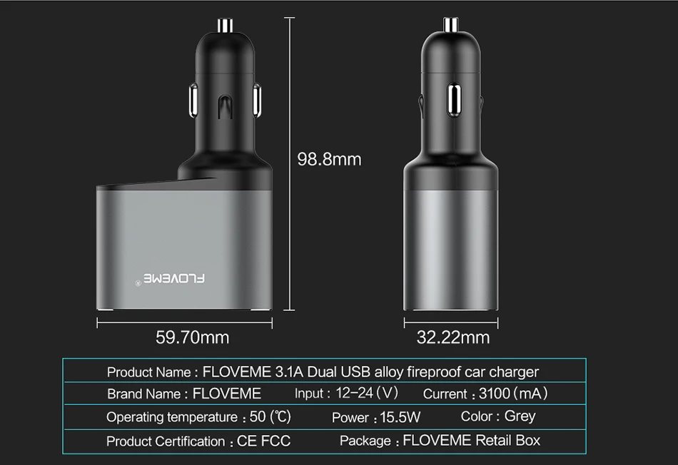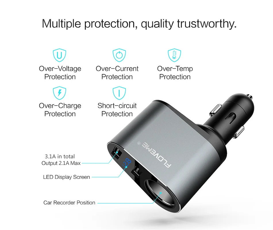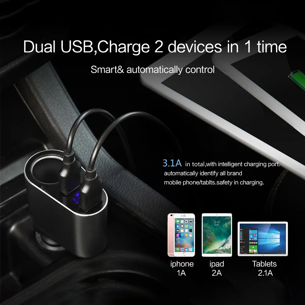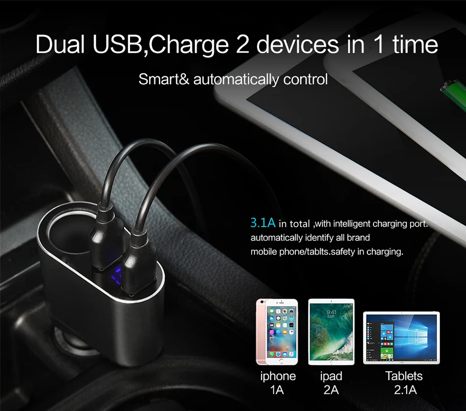 Current:3.1A in Total and 2.1A MAX For One Port