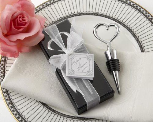 -. Title : Chrome Heart Bottle Stopper in Showcase Display Box - Baby Shower Gifts & Wedding Favors (Set of 72)