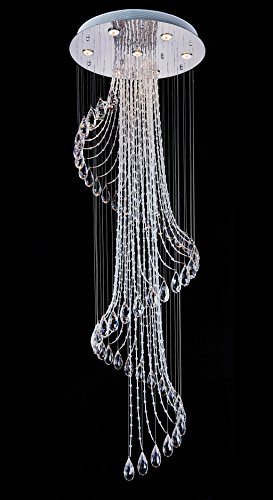 Saint Mossi Modern K9 Crystal Raindrop Chandelier Lighting Flush mount LED Ceiling Light Fixture Pendant Lamp for Dining Room Bathroom Bedroom Livingroom 7 GU10 Bulbs Required H71" X D24"
