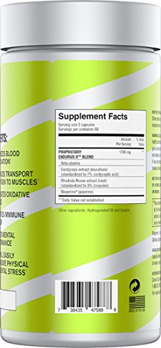 ReleaseDate : 2015-06-22 Studio : MMUSA, Inc. Publisher : MMUSA, Inc. Binding : Health and Beauty Product Description Endurus II is a radical matrix formula based on advanced bio-chemical theories of intra-cellular architecture proven in rigorous anoxic environments. This product enhances oxygen uptake (aerobic capacity) by accelerating the conventional processes of respiration and kinetic biomechanics. This proprietary formula is fused with blood plasma facilators. When these elements are welded to powerful enzyme precursors, oxygen uptake is expanded far beyond normal measures to previously unattainable performance levels. Endurus II gives you all the extended endurance you can handle on demand. So you can perform at maximum capacity longer, at a faster rate than ever before. 0