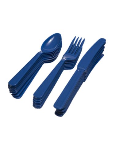 Amscan Navy Flag Blue Plastic Cutlery 24 Pieces 8 Ea Knives, Forks and Spoons