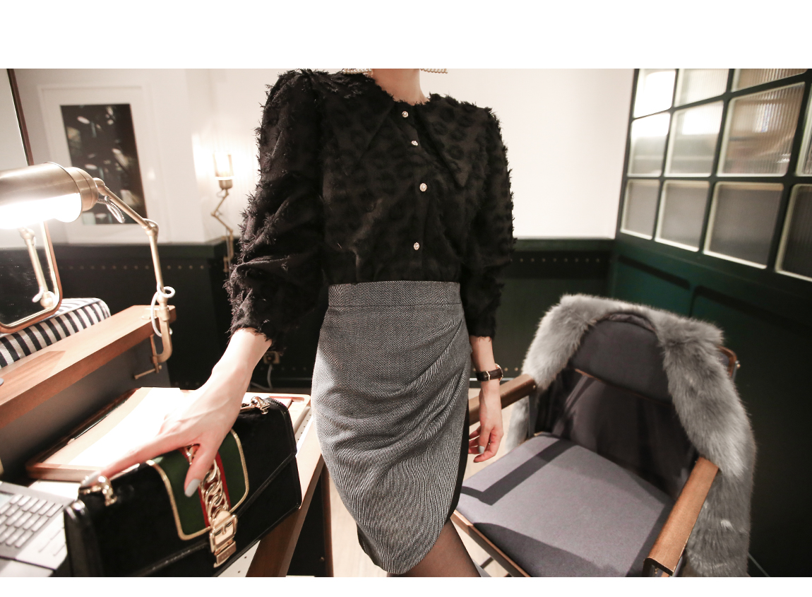 ショルダーにシャーリングを保持着用時の女性に演出されており