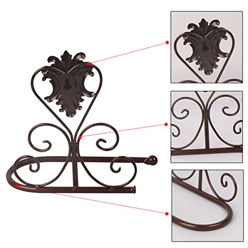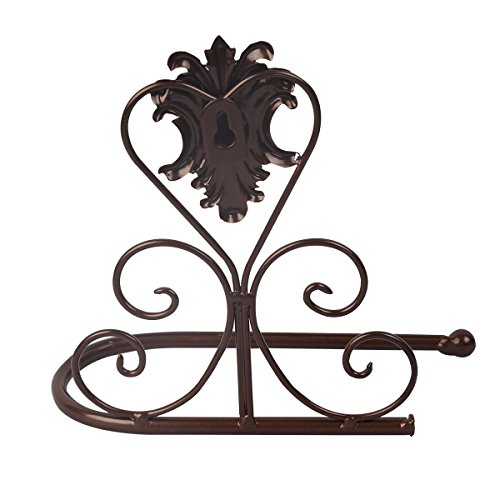 crownroyaljack Vintage Iron Wall Mounted Scroll Collection Toilet Paper Roll Holder Towel Rack, Coffee
