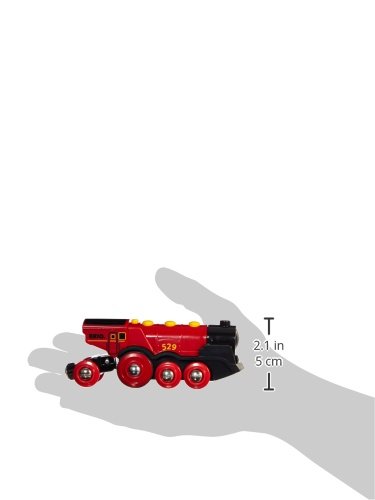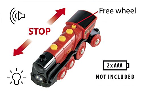 -. Feature : Diese batteriebetriebene rote Lok kann per Knopfdruck vorwärts oder rückwärts fahren und verfügt über 2 Scheinwerfer und Dampflok-Soundeffekte. Ist die Lok ausgeschaltet, kann sie auch per Hand geschoben werden.