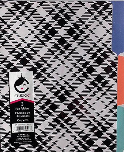 -. Feature : Carolina Pad Studio C / Pack of 3 File Folders / 11.3in z 9.5 in (28.7 cm x 24.1 cm) / Each folder has a colored interior and a black & white exterior design / Holds Letter Size Documents