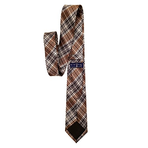 (My Tie Bank)/Accessories/Ties/DIRECT FROM USA/Wells Black Brown Plaid Check 100% Silk 2.5 Inch Skinny Tie
