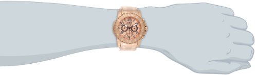 -. Feature : Japanese quartz movement / Flame fusion crystal; 18k rose gold ion-plated stainless steel case and bracelet / Chronograph functions with 60 seconds, 60 minute and 24 hour subdials / Rose gold tone textured dial with brown and white hands, hour markers and Arabic numerals; luminous; unidirectional 18k rose gold ion-plated stainless steel bezel / Water resistant to 330 feet (100 M): suitable for snorkeling, as well as swimming, but not diving