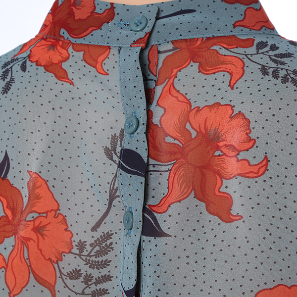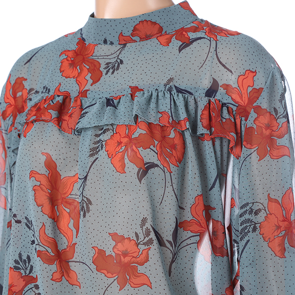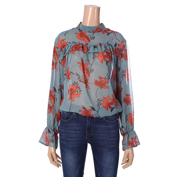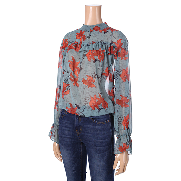▶ 멋스럽고 세련된 심플한 디자인의 분위기있는 선선한 시즌에 즐기기 좋은 봄을 다채롭게 표현한 꽃무늬 프릴 블라우스입니다^^ 목위로 올라오는 반 카라와 넥 뒤쪽의 버튼과 여리한 소매의 프릴이 포인트이며 단품으로 입어도 어디에나 코디하기 좋으며,세미 루즈핏의 베이직한 디자인으로 여러가지 아이템에 다양한 매치를 해주셔도 캐주얼함과 유니크함을 동시에 느낄수 있는 전체적으로 화사하며 싱그러운 분위기가 묻어나는 제품입니다^^