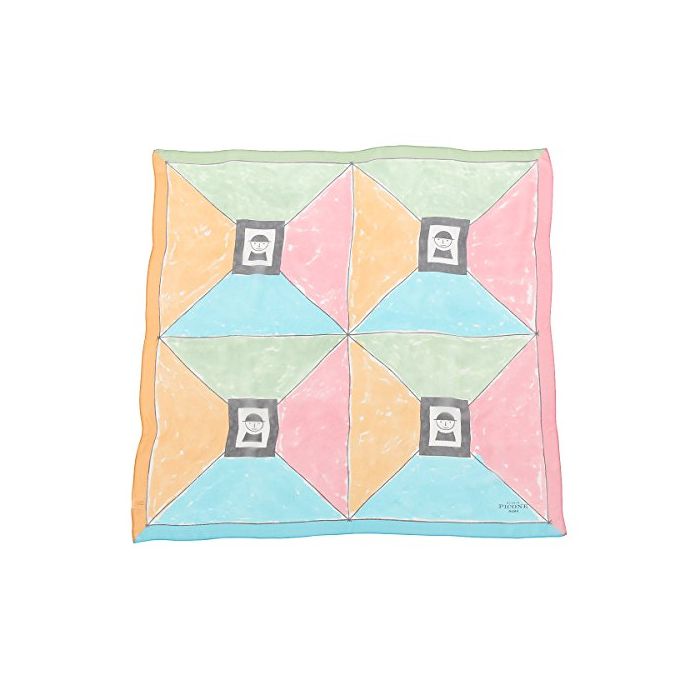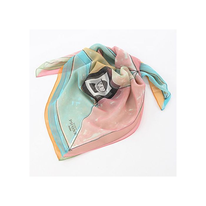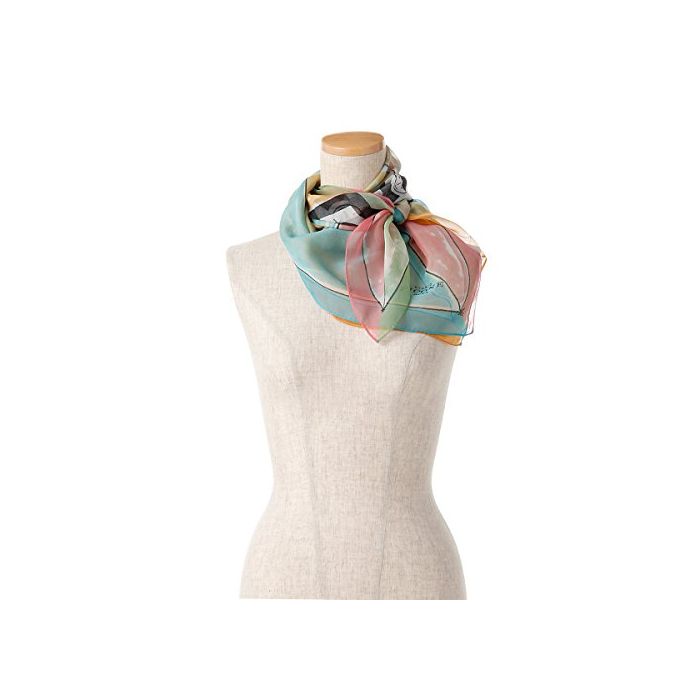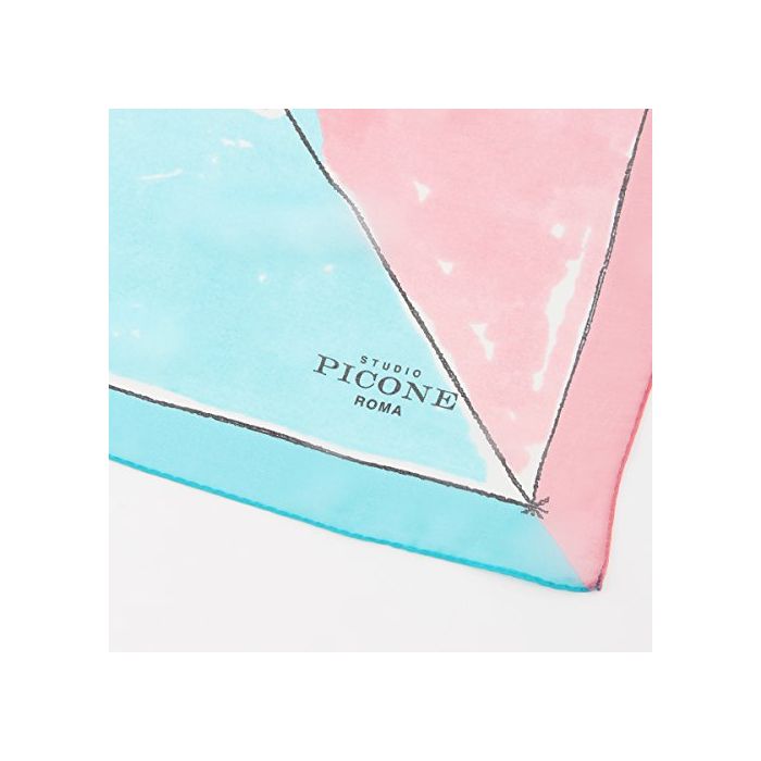 (피코네《앗칫소리》)PICONE ACCESSORI 실크 스카프 대형 핸드 프린트 90×90 4면 멀티 컬러 일본제