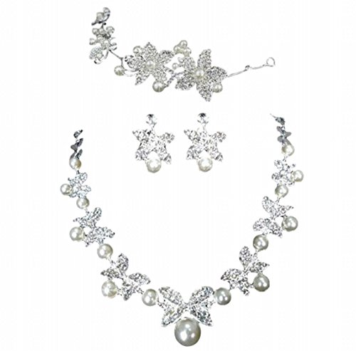 -. Title : (プチハピ)PuchiHapi レディース 髪飾り イヤリング ネックレス アクセサリー 3点 セット 結婚式 新婦 演奏会 ドレスアップ にも