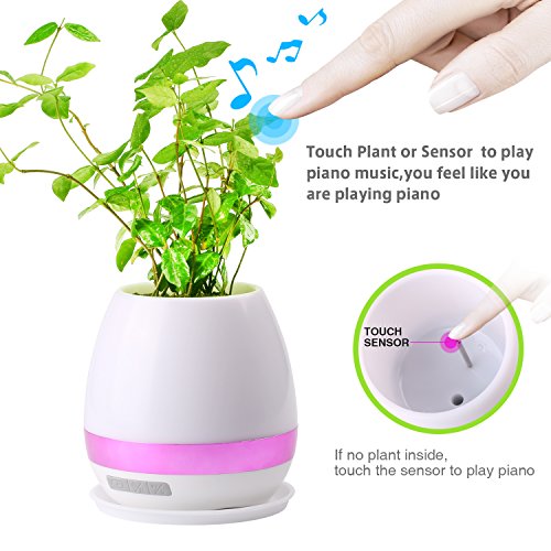 - 5.[Waterproof Flower Plant Pot to grow real plants]touch plants to play Piano or change led light colors.It is also IPX4 waterproof bluetooth speaker with lights for bathroom and shower, but DO NOT submerge it in water.
