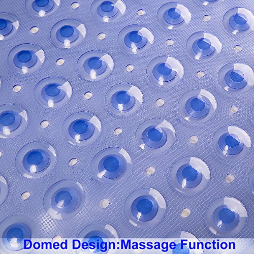 Rectangle Non-Slip Anti-Bacterial Machine Washable PVC Suction Bath Mat 31 by 15.35 inch for Shower Tub Safe Bathtub (Blue)