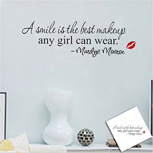 -. Binding : Kitchen -. Brand : VWH -. EAN : 6907888773900 -. Feature : Material: PVC / Size:60*18.5cm / Easy to apply. Just peel off and stick. A beautiful wall art wall decal for your home. / Can be applied to any clean dry and smooth surfaces / Package: 1pcs wall stickers -. IsAutographed : 0 -. Label : VWH -. Manufacturer : VWH -. ProductGroup : Home -. ProductTypeName : HOME -. Publisher : VWH -. Studio : VWH -. Title : VWH A Smile is The Best Makeup English Quote Wall Sticker Decals Home Decor Paper Stickers Living Room Bedroom Decorations